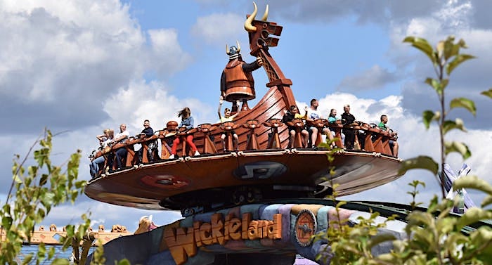 Das Majaland Kownaty hat mit dem „Wickieland“ in der laufenden Saison 2020 einen neuen Themenbereich inklusive zweier Fahrgeschäfte eröffnet. Damit setzt der noch junge Freizeitpark in Polen seine Expansionspläne kontinuierlich weiter um. Das neue Areal orientiert sich thematisch an der beliebten Fernsehserie Wickie und die starken Männer. Kleine und große Besucher können sich unter anderem auf das Fahrgeschäft „Wielka Fala“ freuen, was auf Deutsch „Die große Welle“ bedeutet. Damit ist bei der Attraktion der Name Programm, da es sich um einen sogenannten Disk’o Coaster handelt, bei dem die Fahrgäste auf einer großen runden Scheibe Platz nehmen. Die Plattform fährt dann auf einer wellenförmigen Strecke mit steilen Auffahrten an beiden Enden hin und her. Zusätzlich drehen sich die Scheiben, was eine Extraportion Magenkribbeln garantiert.